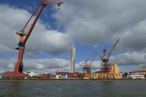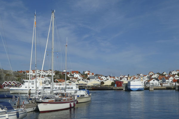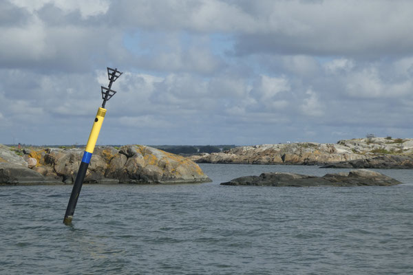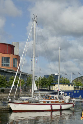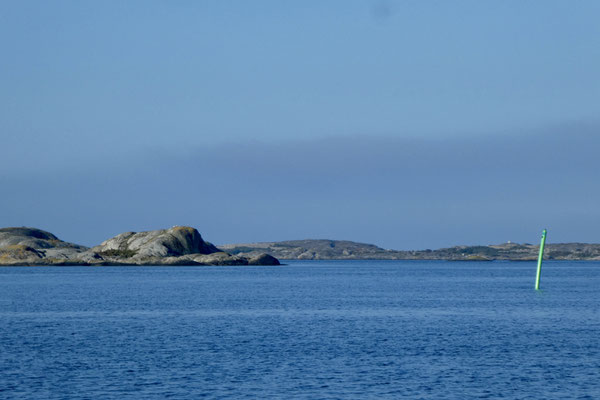 Am Dienstag stechen wir endlich nach Westen in See. Die farbigen Häuser entlang der Göta Älv leuchten im Sonnenlicht. Vorbei an dem verdrehten Tower, alten Segelschiffen und dem Gas- und Öllager tuckern wir in Richtung offenes Meer. Im Containerhafen werden grosse Frachter entladen. Wir setzen Segel und gleiten lautlos entlang der Schären Asperö und Köpstadsö nach Süden. Die blauen Fähren kreuzen in regelmässigen Abständen unseren Kurs.