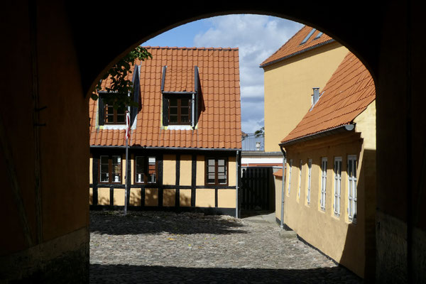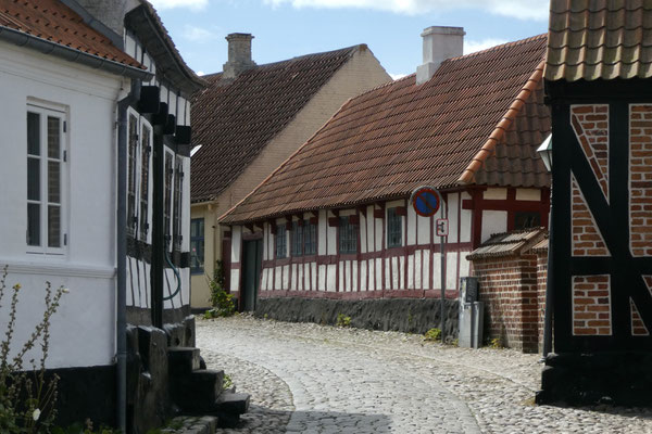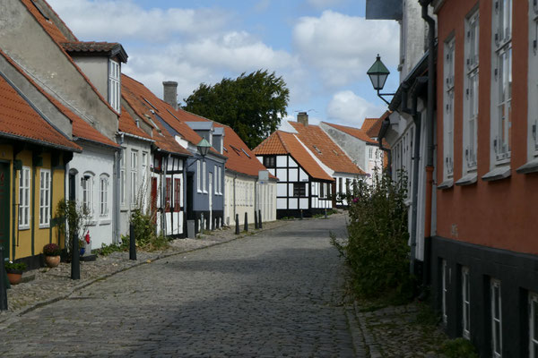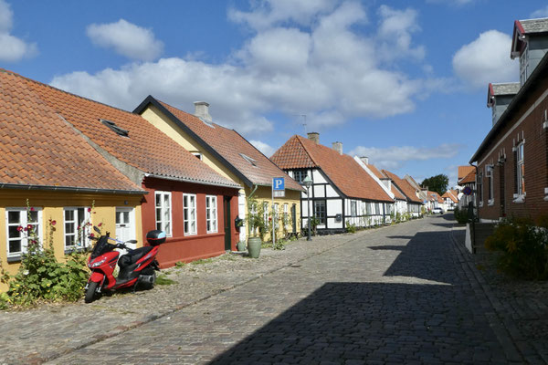 Der alte Stadtteil von Ebeltoft ist voller Nostalgie. Cafés, Restaurants und idyllische Geschäfte schmiegen sich malerisch in die engen, mittelalterlichen Kopfsteinpflasterstrassen zwischen Fachwerkhäusern und Stockrosen.