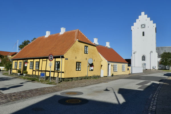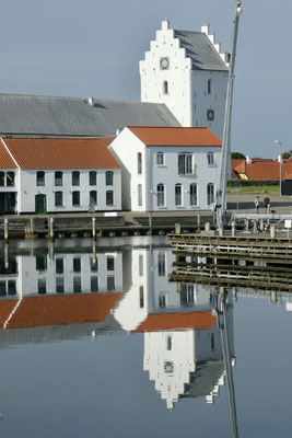 Kurz nach 17:00 Uhr legen wir in Sæby am Gästepier an. Zuerst wollen wir die Stadt erwandern. Der einstige Fischerort mit seiner restaurierten Altstadt zählt zu den schönsten Orten in Dänemark. Die markante Kirche ist weithin sichtbar.