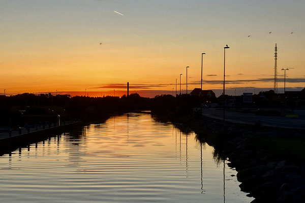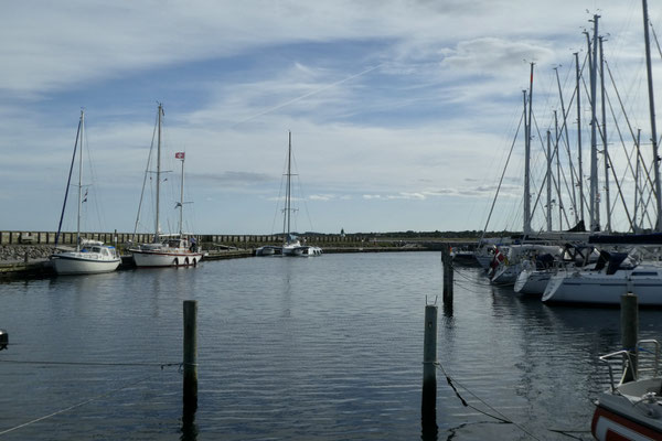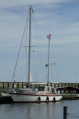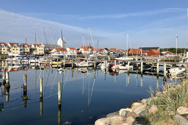 Mitten in einem langen Sandstrand wurde ein Steingriff gebaut und ein Kanal ausgebaggert. Der aufgeschüttete Hafen von Øster Hurup bietet genug Schutz vor dem angekündigten Sturm aus Westen. Nach dem Anlegen längs am Steg geniessen wir ein Bier im nahegelegenen Restaurant und amüsieren uns im Hafenkino. Einige Segler kommen das Hafenmanöver nur mit einem lauten "Rumms" über die Bühne.