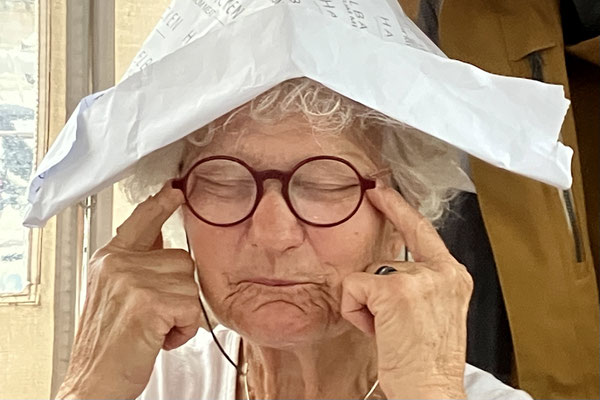 Für den Schlummi besuchen wir ein letztes Mal die Taya. Walti hat aus dem Haga-Quartier eine riesige Zimtschnecke mitgebracht.