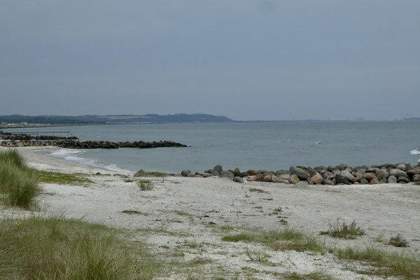 Wir mieten drei Fahrräder, um auf der einzigen Strasse die Insel zu erkunden. Leider macht nach zwei Kilometern der Hinterreifen eines Fahrrads schlapp. Stephan rast zurück zum Hafen und holt eine Pumpe. Keine Chance – das Loch ist zu gross. Was nun? Ein älterer Herr mit einem Elektro-Golfwagen bringt das Fahrrad samt Vreni zurück zum Hafen. Am anderen Ende der Insel werden wir mit einem schönen Strand und einem weiten Blick bis Aarhus belohnt.
