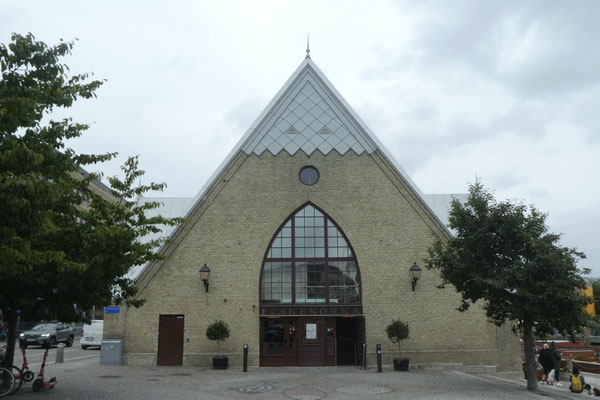 Kurz nach 17:00 Uhr legen wir in Sæby am Gästepier an. Zuerst wollen wir die Stadt erwandern. Der einstige Fischerort mit seiner restaurierten Altstadt zählt zu den schönsten Orten in Dänemark. Die markante Kirche ist weithin sichtbar. Im "Jacobs Fiskerestaurant" schlagen wir zu. Am reichhaltig gedeckten Buffet ist alles, was das Herz begehrt, bereit – wir behelfen uns mit Plastikhandschuhen, um unsere Teller zu füllen. 'All you can eat' für 35 CHF.