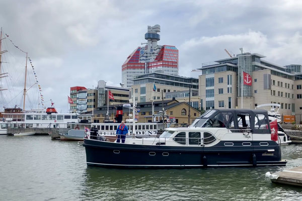 Plötzlich landen Bernt und Doris mit ihrer Carissima genau vor uns am Steg. Wir kennen sie aus Nyköping, wo wir vor zwei Jahren zusammen die Gasflaschen aufgefüllt haben. Wir feiern das Wiedersehen mit einem Glas Weisswein.
