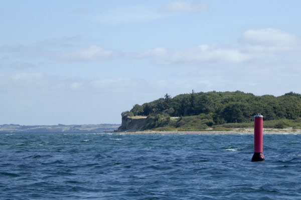 Nach dem Passieren der Untiefen von Ebeltoft setzen wir die Genua mit Reff 2. Auf Raumschotskurs hebt uns die Welle von hinten an – ein sanftes Auf und Ab. Nach dem Kap von Sleterhage rollen wir die Segel ein. Mit Wind auf die Nase motoren wir der Küste von Helgennaes entlang bis Molshoved. Mit Halbwind setzen wir die Genua und den Besan. Gerefft rauschen wir durch die Wellen, Aarhus entgegen. Eine grosse Katfähre passiert unseren Kurs mit 38 Knoten.