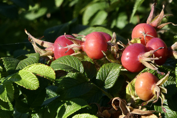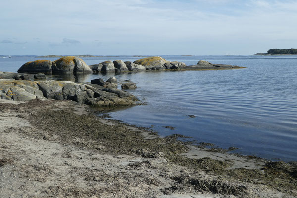 Bei einer kleinen Wanderung erkunden wir die nahegelegenen Schären. Der Steinhügel an der Südspitze der Insel lädt zum Baden ein. Hagenbutten und Brombeeren sind reif und warten darauf, gepflückt zu werden.