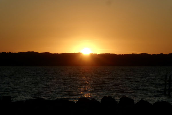 Am Abend frischt der Wind auf, und heult in den Wanten. Nach einem leckeren Hörnli-Eintopf versinkt die Sonne am goldenen Horizont.