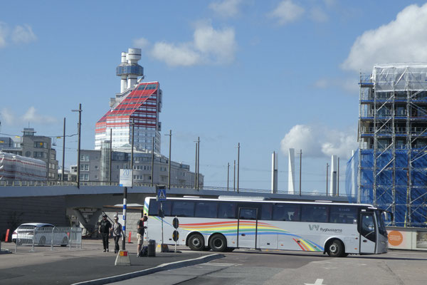 Am Sonntagmorgen machen wir uns auf den Weg in die Innenstadt. Entlang der Hafenkante erwandern wir uns einige Neubauten. Besonders das Dokk1 mit seiner Bibliothek sticht als grosser Glasbrocken ins Auge. Die Lichtsignale an den Kreuzungen sind mit Wikingersymbolen beleuchtet.