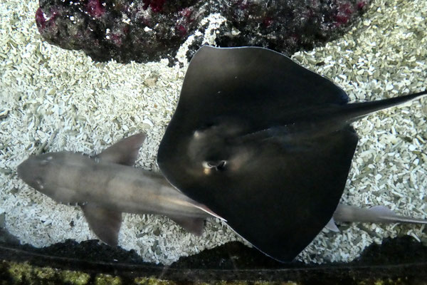 Der Höhepunkt des Besuchs ist das Haifischbecken, in dem die schnelle Fütterung der Haie mit frischem Fisch demonstriert wird.