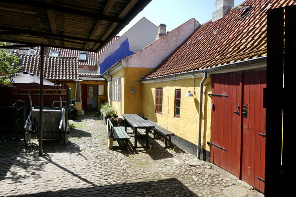 Gegen Mittag machen wir uns zusammen mit Bernd und Doris auf den Weg in die Innenstadt. Ebeltoft gehört mit seinem historischen Ambiente zum Nationalpark Mols Bjerge. Das Alte Rathaus ist wegen seiner einzigartigen Idylle ein beliebter Ort für Eheschliessungen.