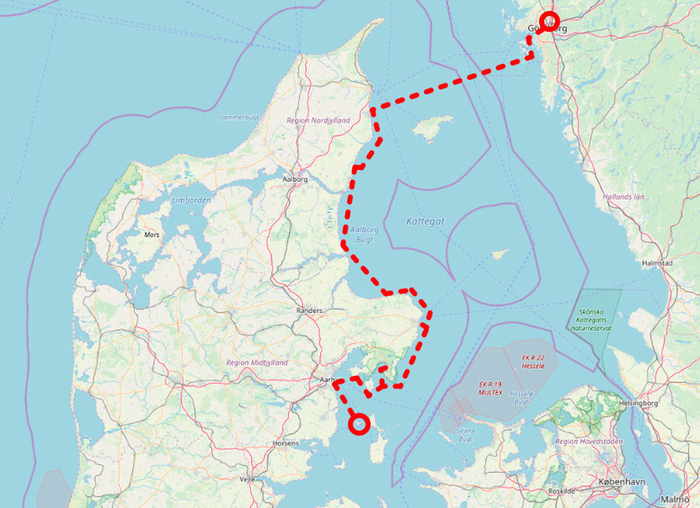 Göteborg - Donsö - Saeby - Hou- Oester Hurup - Grenaa - Ebeltoft - Aarhus - Tunø