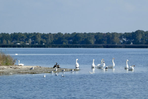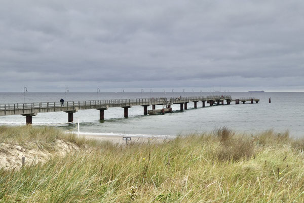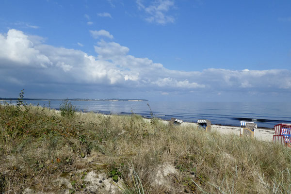 Kurz nach dem Anlegen machen wir uns auf den Weg zur Ostseeküste. Am Waldrand begrüsst uns ein Specht. Dann hören wir das vertraute Rauschen der kleinen Wellen am endlosen Sandstrand. Vom letzten Ostwind liegt noch viel Seegras am Ufer. Im nahen Strandcafé bei Udo bestellen wir eine grosse Fischplatte für zwei: Zander, Dorsch, Scholle und Barsch werden serviert – dazu ein grosses Schwarzbier.