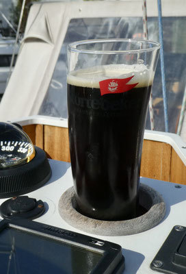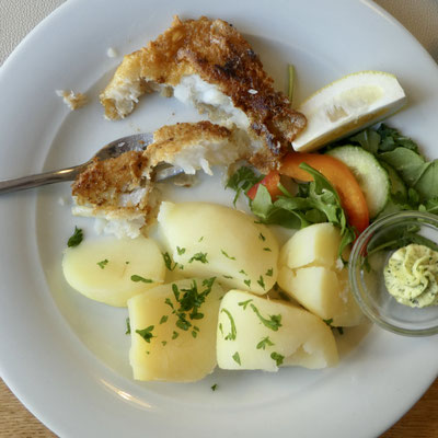 Auf dem Rückweg zum Hafen lassen wir uns in der Bierhalle verwöhnen: Heringsfilet mit Bratkartoffeln und ein grosses Störtebeker-Bier. Zurück im Hafen vertreibt die Polizei die vielen Angler von den Bootsstegen – das Fischen im Hafen ist verboten. Fünf Minuten später ist es wieder ruhig. Dann stehen sie erneut da und ziehen einen Barsch nach dem anderen aus dem Wasser.
