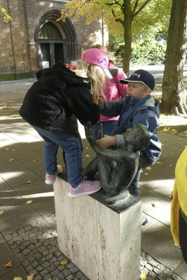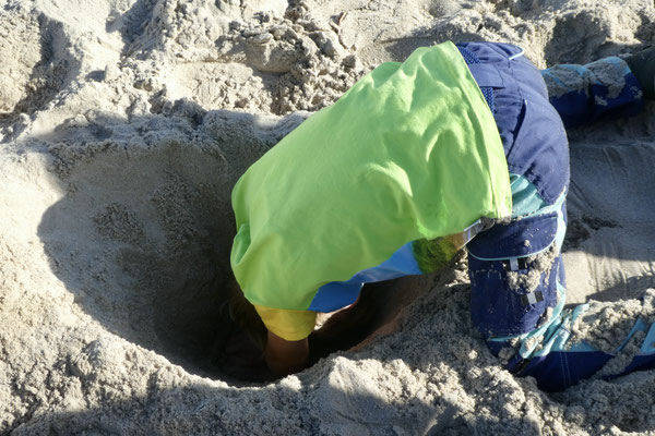 Diese Frage stellen uns die Kinder. Sie buddeln nach dem Essen tief in den Sand und merken schnell, dass es weiter unten feucht wird. Nach einer Stunde verlassen wir den riesigen Sandhaufen und ziehen weiter zum Rügenmarkt im Hafen.