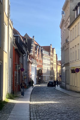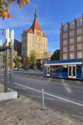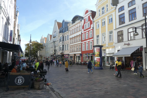 Renato und seine Familie reisen einen Tag früher nach Hamburg. Am Montagmorgen machen wir uns mit dem Mietbus auf den Weg, um die ganze Familie samt Gepäck nach Rostock zum Bahnhof zu bringen. Nach einer Fahrt durch herrlich herbstlich gefärbte Alleen überqueren wir bei Stralsund die Ziegelgrabenbrücke und parken kurz darauf im Cityparkhaus – direkt neben der Fussgängerzone im Herzen von Rostock.