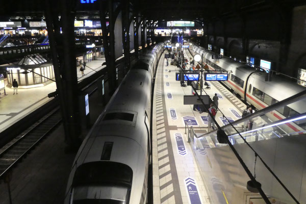 In Rostock versorgen wir uns schnell beim Asiaten, holen unser Gepäck aus dem Schliessfach und suchen unseren Zug nach Hamburg. Eine rote Diesellok steht am Bahnsteig, gefolgt von einem IC mit Elektrolok. Ohne Strom wird unser Zug mit Diesel nach Hamburg gezogen. Dort erwartet uns der Rest der Familie.