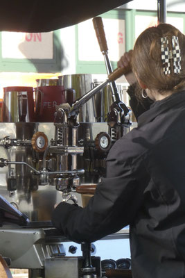 Renatos Familie erwartet uns am Strand. Wir trennen uns und gehen verschiedene Wege. Während Miriam mit den Kindern am Strand bei der Brücke im Sand buddelt, besuchen wir mit Renato die Einkaufsmeile in der Fussgängerzone. Vor dem Museum, das viele Kutschen und Pferdegeschirr zeigt, setzen wir uns in die Sonne und gönnen uns ein Stück Kuchen. Mit viel Dampf und Rauch „rasen“ wir mit „Rolland“ zurück nach Lauterbach.