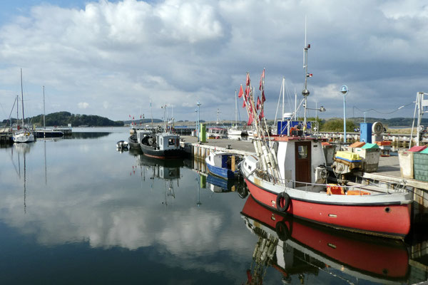 Leichte Bewölkung und wenig Sonne erwarten uns am Donnerstagmorgen. Der Herbst ist spürbar, auch wenn die Blätter noch nicht fallen. Pünktlich um neun Uhr beginnt der Rügenmarkt – wie immer dienstags und donnerstags. Der ganze Hafen ist mit bunten Ständen gefüllt. Neben Nützlichem findet sich auch viel Selbstgemachtes und Kunsthandwerk.