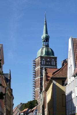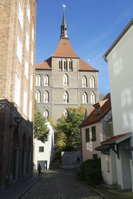 Leider ist das Gelände der Klosterruine gesperrt. Bei einem kleinen Rundgang können wir jedoch den Jonishof besichtigen. In der Altstadt von Stralsund steht die älteste der drei grossen evangelischen Pfarrkirchen: die St.-Nikolai-Kirche. Sie wurde erstmals 1276 urkundlich erwähnt. Ihr Patrozinium erhielt die Kirche am Alten Markt nach Nikolaus von Myra (Türkei) – dem Schutzheiligen der Seefahrer und Händler.
