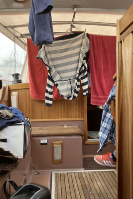 Heute übernachten wir zum letzten Mal auf Odin. Ab morgen beziehen wir ein Appartement bei „Werft und Meer“. Nach der Bestandsaufnahme von Medikamenten, Kleidung und Lebensmitteln packen wir die Koffer für die Heimreise.