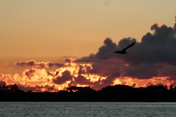 Die ganze Nacht über fegen kräftige Böen durch den Hafen. Der Mast schwingt, der Rumpf vibriert. Der Wasserstand ist bedenklich gesunken – das Echolot zeigt 0 m unter dem Kiel an. Die Fender hängen mittlerweile an der obersten Kante.