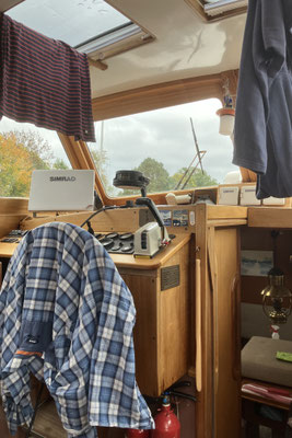 Gemeinsam mit Mathias, dem Chef der Vilmwerft, wird die To-do-Liste für die Winterarbeiten besprochen. Die Holzaufbauten müssen abgeschliffen, gebeizt und neu lackiert werden. Der Klapppropeller schlägt, da die Lager Spiel haben. Ein vierseitiger Beschrieb mit Fotos wechselt den Besitzer. Für den Winter steht einiges an Arbeit an.